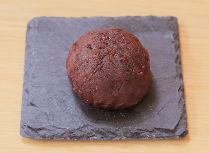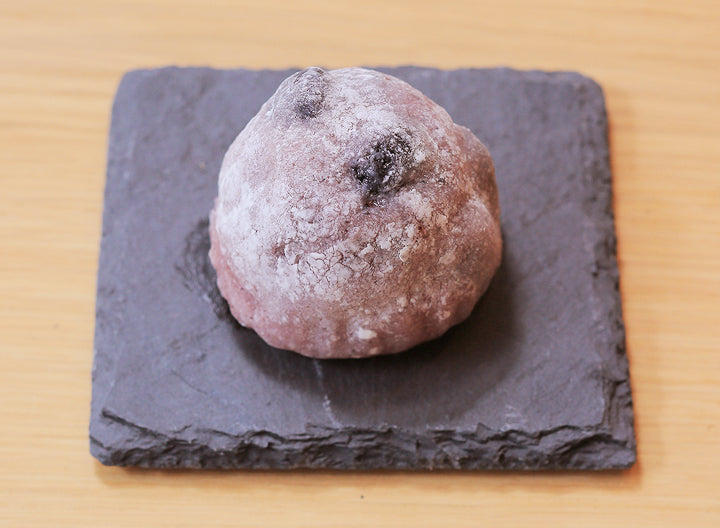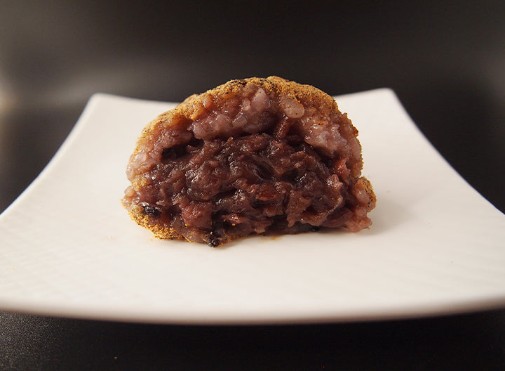 自然な甘さの鳴門金時のペーストでおはぎ餅を包みました。アクセントのレーズンをのせました。