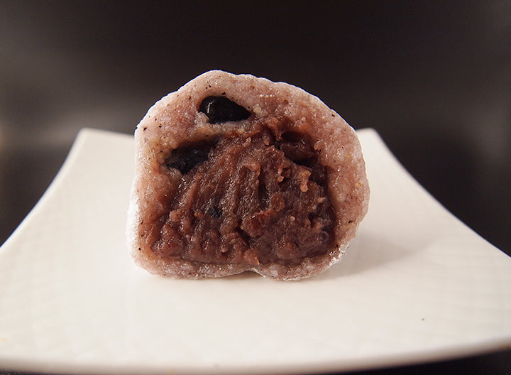 黒米だけで色合いを付けています。こしあんと薫り高い桜葉が良く合います。